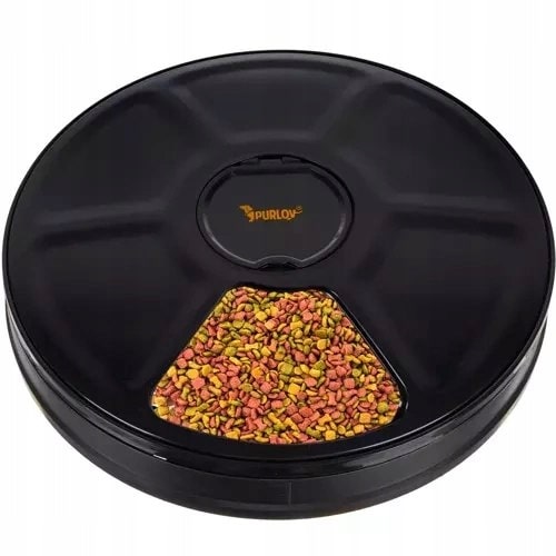 6 КАМЕР – чаша имеет 6 камер объемом 150 мл каждая. 5 накрытых и один открытый. Система открытия по времени открывает одну камеру с едой в определенное время при повороте крышки.
