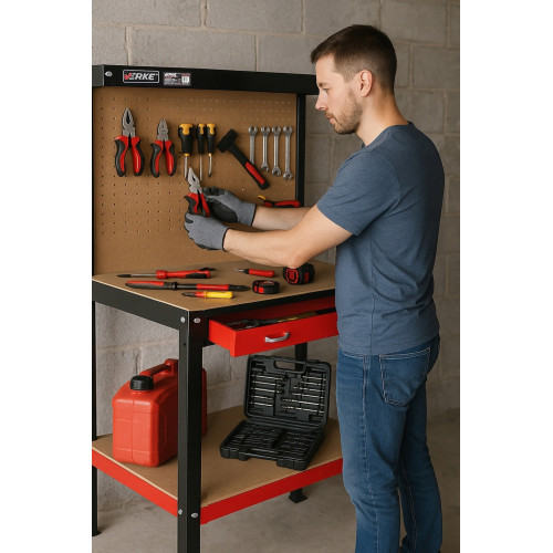 Большой верстак с выдвижным ящиком и ручками – грузоподъемность 100 кг, прочная конструкция