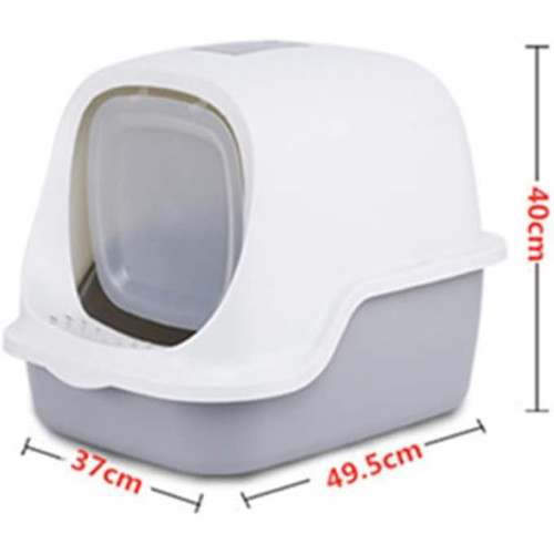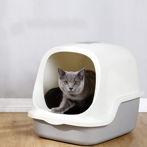 Закрытый кошачий туалет с фильтром Retuu XL (бело-серый) + лопатка в комплекте