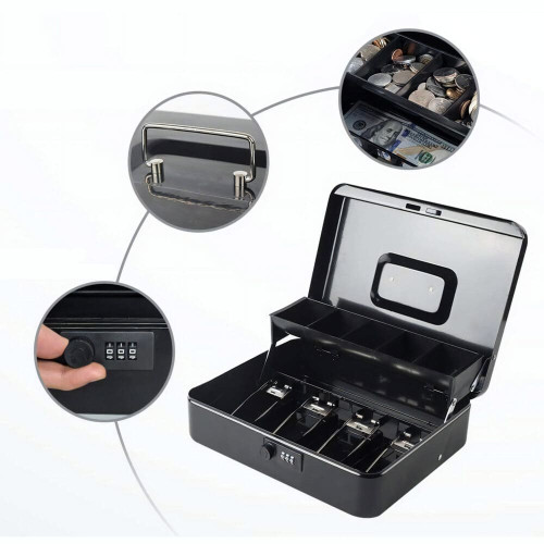 Большой металлический ящик для ключей и денег размера XXL (30 × 24 × 9 см) – это прочный сейф, который будет хорошо работать как для хранения наличных, так и для ключей. Благодаря прочной конструкции он обеспечивает дополнительную безопасность, а компактные размеры позволяют легко установить его в офисе, мастерской или дома.