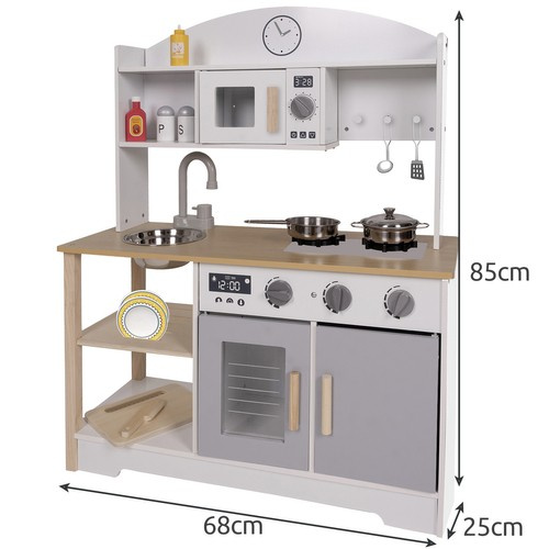 Плита сочетает в себе большое удовольствие и обучение. Будет отличной игрушкой для игры с родителями или сверстниками. Изделие изготовлено из прочной древесины. Используемый материал положительно влияет на долговечность и длительность использования, а также на безопасность и здоровье детей. Изделие идеально подходит для частного использования дома, а также может быть использовано в качестве оборудования для детских садов, детских игровых комнат или учреждений по уходу и обучению. Очаровательная игрушечная кухня – отличный подарок маленькому повару на многие случаи жизни! Это вызовет улыбку на многих маленьких лицах!
