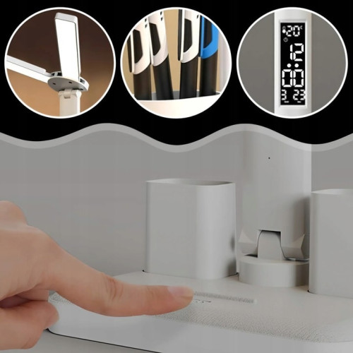 Основание светильника служит держателем для ручек и других офисных принадлежностей, а также подставкой для телефона. Это поможет вам держать свой стол чистоплотным, а телефон всегда под рукой.