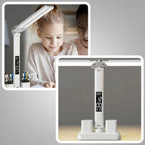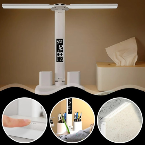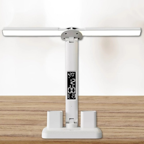 Наша двойная светодиодная лампа – идеальное решение! Благодаря встроенным функциям, таким как регулировка угла наклона, сенсорный переключатель, часы и органайзер, он оправдает ожидания каждого пользователя – от студента до профессионала.