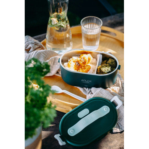 в любом месте. Оснащён встроенным нагревательным элементом, он быстро и равномерно разогревает пищу без микроволновки. Несколько отделений дают возможность хранить разные блюда отдельно, сохраняя их вкус и аромат. Плотная крышка с защелками предотвращает проливание, а удобная ручка обеспечивает комфорт при переноске. Такой термоланчбокс станет отличным выбором для работы, учебы, поездок и путешествий.