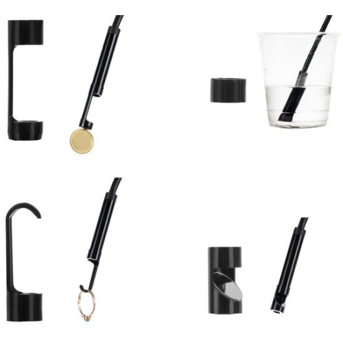 - 4 СОВЕТА ВКЛЮЧЕНЫ — камера имеет целых 4 сменных насадки. У каждого из них своя функция (классический наконечник, крючок, магнит, зеркало). Камера подключена к длинному кабелю, который очень гибкий и прочный. Вы можете легко добраться даже до очень труднодоступных мест и увидеть причину неисправности.