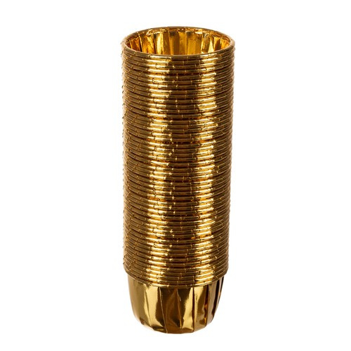 - МАТЕРИАЛ И ИЗГОТОВЛЕНИЕ - вкладыши для кексов изготовлены из прочной бумаги, покрытой алюминиевой фольгой золотистого цвета. Эта фольга не только придает им элегантный вид, но и обеспечивает дополнительную защиту от жира и воды . Благодаря высокому качеству мятой золотой фольги формы сохраняют свой цвет и форму во время использования.