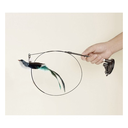 - УДОЧКА С ПТИЦЕЙ - игрушка представляет собой длинную гибкую удочку с интересными элементами на конце. Это привлекает внимание кошки и побуждает ее прыгать и ловить. У птицы длинный перистый хвост и изящный колокольчик .