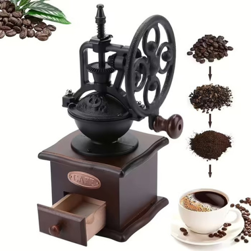 Ручная деревянная кофемолка – это высококачественная ручная кофемолка, которая может обрабатывать больший объем зерен, при этом предоставляя возможность выбирать, насколько мелкими или грубыми будут ваши зерна. Винтажный и антикварный дизайн придает ей изысканность и элегатность.