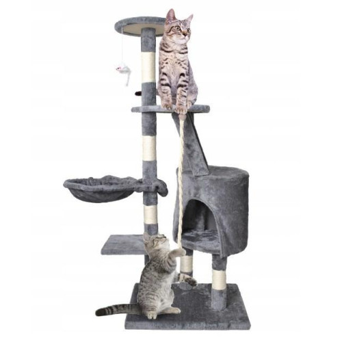 Полы в когтеточке для кошек покрыты очень мягким мехом, что гарантирует комфортный отдых с мурлыканьем на заднем плане . Главное достоинство дерева - уютный домик. Дополнительный вариант отдыха - логово на 3-м уровне когтеточки. Котенок сможет свободно отдыхать. 5 уровней наблюдения удовлетворят кошачье любопытство. В случае скуки вы можете быть на охоту мыши над насаженным ± на камеди се , который находится на 5 - м этаже скребком - вы можете поймать их и атаковать. Дополнительно на 4-м уровне когтеточки есть веревка, по которой кошка может залезть.