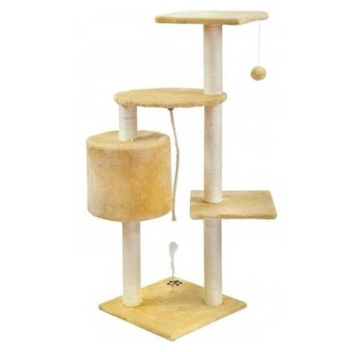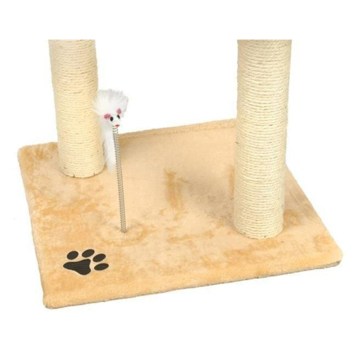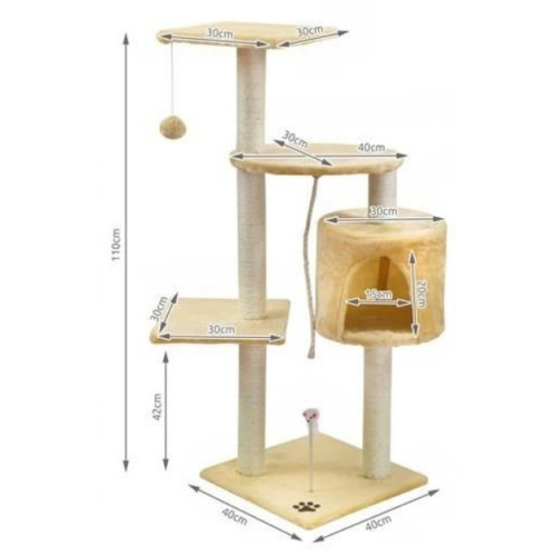 Полностью оборудованная когтеточка с домиком и террасами, где котенок может отдохнуть. Все это покрыто мягким велюром . На платформе есть меховая мышка на пружине , которая позволит кошке играть часами. Устойчивое основание и большое пространство делают когтеточку подходящей даже для нескольких кошек. Заточка когтей - очень важное занятие для кошек - обязательно снабдите кошку специальной когтеточкой, чтобы не повредить обои или мебель. Столбы, домики и площадки покрывали когтевым шнуром. Квадратные платформы меньшего размера и домик можно поворачивать - вы можете идеально адаптировать их к потребностям вашей кошки.