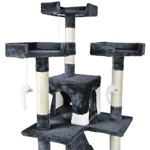 Столбы покрыты специальным шнуром для заточки когтей, что является очень важным занятием для кошек - обязательно снабдите кошку специальной когтеточкой, чтобы не повредить обои или мебель. В набор входят игрушки - мышки. Верхние шезлонги можно поворачивать - вы можете идеально приспособить их к потребностям вашей кошки.