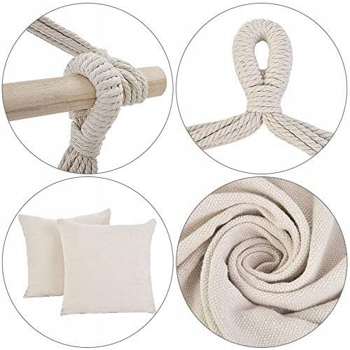 - В комплект входит кресло, деревянная балка и 2 подушки.