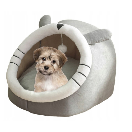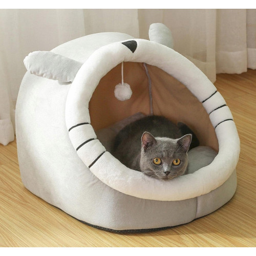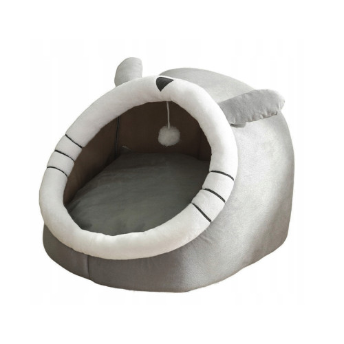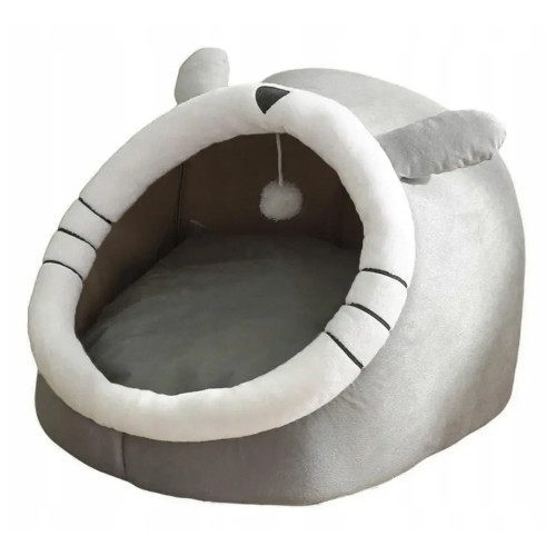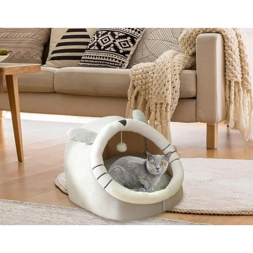 Лежак для животных в форме закрытой будки с кошачьими ушками.
