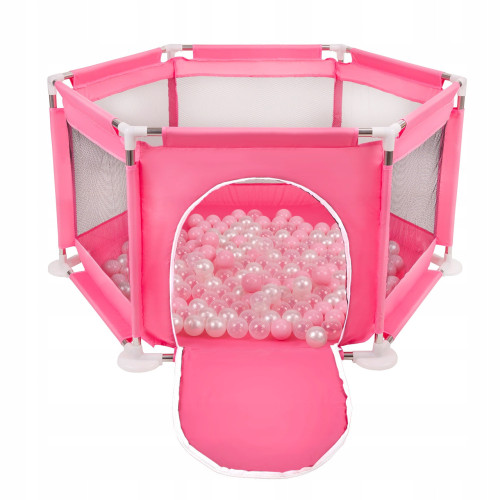 Складной шестиугольный манеж с пластиковыми шариками доставит вашему ребенку массу удовольствия. Безопасное закрытое пространство позволяет маленьким детям свободно играть. При этом манеж легко складывается, поэтому его можно спрятать или взять с собой в отпуск, на пикник или в гости к друзьям.