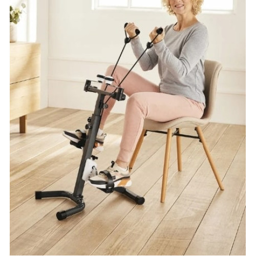 - 3-в-1: с эргономичными ручными шатунами, педалями и фитнес-резинами с ручками