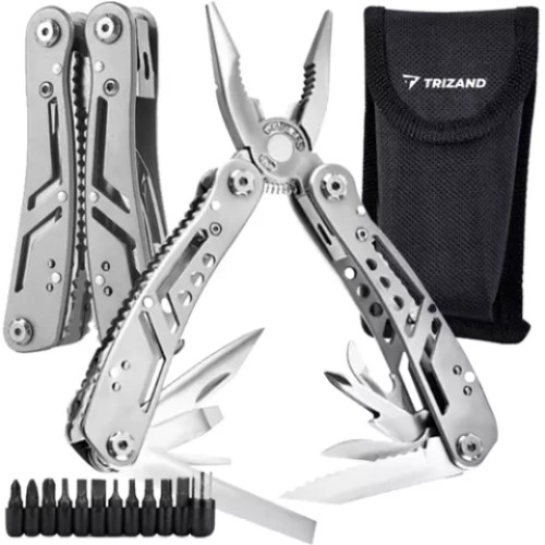 - 13 в 1 - продукт имеет целых 13 различных встроенных инструментов, с помощью которых можно справиться во время выживания, рыбалки, походов, кемпинга, в палатках, на работе или просто во время работы в саду. В состав мультитула входят нож, пильное полотно, плоскогубцы, открывалка для бутылок, консервный нож, отвертка, перочинный нож, пассатижи, резак и многое другое.