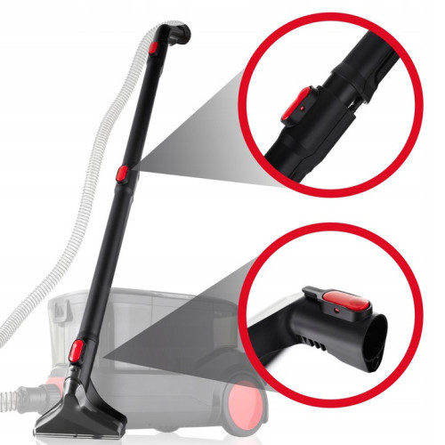 Встроенный шланг для жидкости в трубке пылесоса обеспечивает большее удобство, эффективность и безопасность. Это влияет на эстетику и порядок при использовании устройства, а также облегчает маневрирование пылесоса. Это также гарантирует меньший риск протечек и большую безопасность, которая может привести к затоплению и повреждению очищаемых поверхностей.