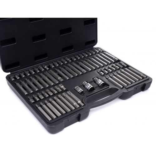 Расширенные возможности: Комплект содержит насадки разной длины – 30 мм и 75 мм, что позволяет легко достигать даже труднодоступных мест. Вас ждут 8 бит RIBE (R5/R6/R7/R8/R9/R10/R12/R14) , 5 шлицевых сверл- SPLINE (M5/M6/M8/M10/M12), и 6 шестигранных ключей-IMBUS (H4/H5 /H6/H7/H8/H12) .