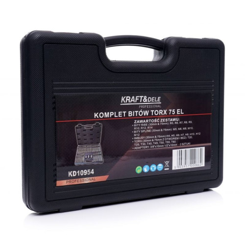 Комплект бит TORX/RIBE/IMBUS/SPLINE 75 штук от Kraft&Dele, модель KD10954, которая станет незаменимым инструментом для любого профессионала или любителя ремонтных работ. Этот уникальный комплект разработан с учетом потребностей современного пользователя и включает в себя все необходимое для различных задач.