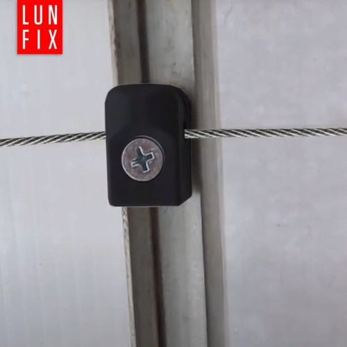Проденьте край веревки в первый крючок и затяните его, затянув винт.