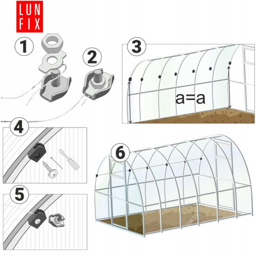 Набор совместим с любой теплицей LUN FIX длиной до 6 м (с расстоянием 0,67 см между пролетами/арками)