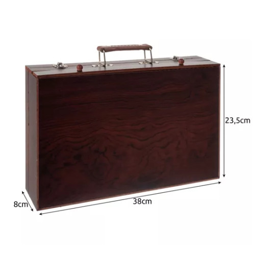 - ДЕРЕВЯННЫЙ ЧЕМОДАН С ЯЩИКОМ – арт-набор для детей представляет собой практичный деревянный чемоданчик с замком и ручкой. Это делает транспортировку содержимого чемодана комфортной и очень простой.