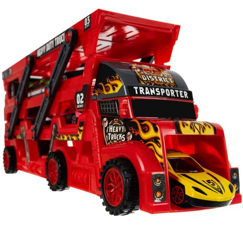 - 3 ГОРИЗОНТАЛЬНЫЙ ПРИЦЕП - прицеп имеет 3 уровня, предназначенные для безопасной перевозки и хранения игрушечных машинок, благодаря чему ваш ребенок не потеряет ни одной ценной машинки и сможет перевозить их по гоночным трассам по всему миру.