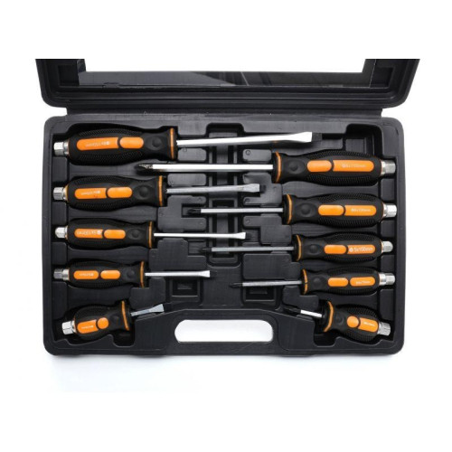 Набор отверток из 10 штук - это компактный и чрезвычайно полезный инструмент для широкого спектра ремонтных и монтажных работ. Каждая отвертка имеет прочную конструкцию из высококачественных материалов, что обеспечивает длительный срок службы и надежность в работе. Благодаря разнообразным типам головок, таким как шлицевые и крестообразные этот набор отверток подходит для работы с соответствующими видами винтов и болтов. Компактная упаковка позволяет удобно хранить отвертки рядом и брать их с собой в дорогу или на работу. Этот набор идеально подходит для использования дома, на рабочем месте, в гараже или даже в автомобиле для выполнения небольших ремонтных работ. Благодаря своей универсальности, набор отверток из 10 штук станет отличным дополнением к любому инструментальному арсеналу, помогая сделать ремонтные работы быстрыми, эффективными и удобными.