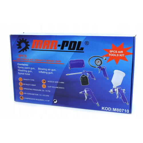 Набор отлично подойдет для автомобильной мастерской, небольшого цеха, автомойки или гаража. В состав набора входят: краскопульт, предназначенный для окрашивания предметов из дерева, металла или пластмассы; пистолет, который может распиливать разные жидкости; пистолет продуваемый; пистолет для накачки шин и шланг спиральный из полиуретана. Полиуретановый шланг характеризуется эластичностью и износостойкостью, а также широким диапазоном рабочих температур. Все инструменты набора оснащены быстроразъемными соединениями, что обеспечивает удобство его эксплуатации. Преимуществом набора является то, что если вы решите купить пневматический набор MAR-POL, то приобретете сразу несколько полезных инструментов, обеспечивающих широкий фронт доступных работ.