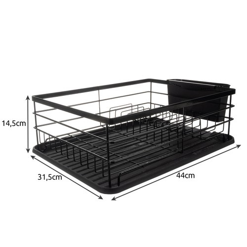 - ЛОФТ ВНЕШНИЙ ВИД - современный, элегантный образ лофта сделает сушилку украшением вашей кухни! В комплект входит съемное отделение для столовых приборов — просто повесьте его на боковые перекладины сушилки. Его можно установить в любом месте сушилки. Основание отделения для столовых приборов и основной поддон для воды изготовлены из прочного черного пластика. Кроме того, универсальный черный цвет впишется в любой интерьер.