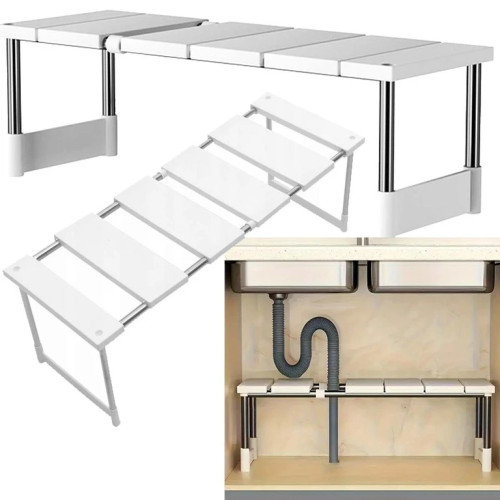 Полка выдвижная, то есть вы можете регулировать ее ширину в соответствии с имеющимся пространством. Эту выдвижную полку можно использовать в разных местах дома, таких как кухня, ванная или под раковиной.