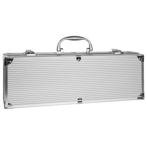- ПРОЧНЫЙ АЛЮМИНИЕВЫЙ КОРПУС – гриль-набор упакован в очень прочный чемодан из алюминия. Имеет эргономичную ручку, обеспечивающую удобную переноску и транспортировку. Мы легко можем взять его с собой друзьям или в путешествие.