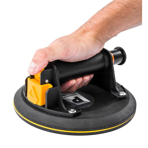 Прижмите ручку плоской стороной к материалу, нажав кнопку насоса несколько раз (примерно 6 - 9 раз), пока стрелка из красного поля не переместится в зеленое поле. Вакуум приведет к тому, что ручка плотно приляжет к материалу. Рукоятку можно отпустить, нажав на кнопку с другой стороны на рукоятке. Чтобы облегчить переноску, присоска была упакована в чехол для переноски. Чехол застегивается на две застежки, он прочный и устойчивый к повреждениям. Присоска имеет пластиковый чехол, который защищает ее от царапин и грязи.