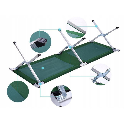 Эта складная кемпинговая кровать — идеальное решение для всех любителей кемпинга, путешествий, рыбалки и активного отдыха на природе. Прочная конструкция и продуманная система складывания обеспечивают комфортный сон в походных условиях, а также быструю сборку и разборку без использования инструментов.