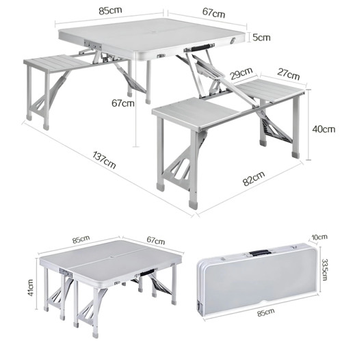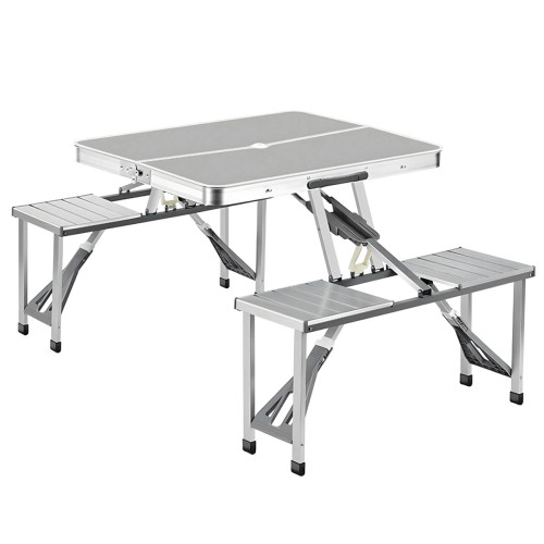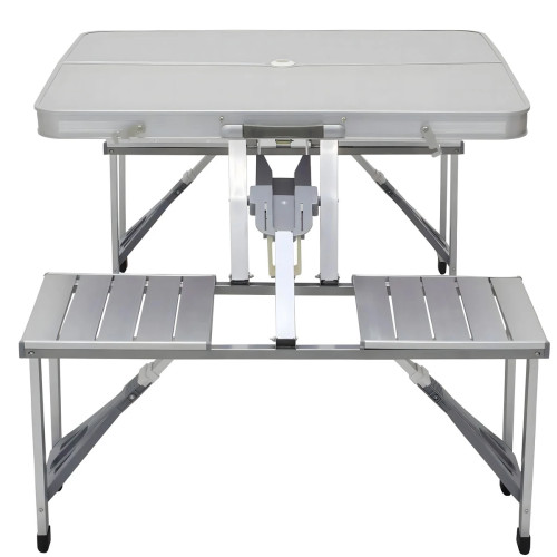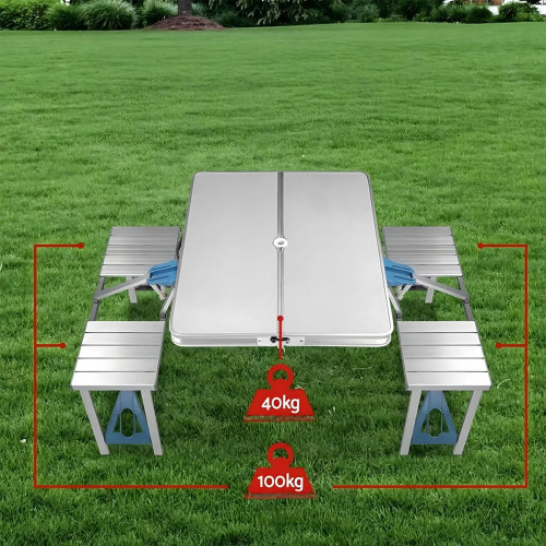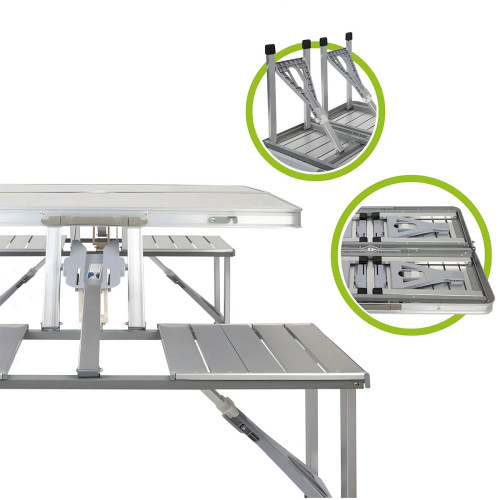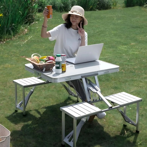 Идеально подходит для кемпинга, пляжа, сада или семейного пикника! Прочная конструкция из алюминия и ПВХ обеспечивает долговечность, а в сложенном виде весь стол превращается в удобный чемодан. Стол имеет отверстие для зонта, позволяющее наслаждаться тенью в жаркие дни. Готов к использованию сразу после разложения!