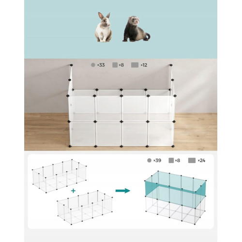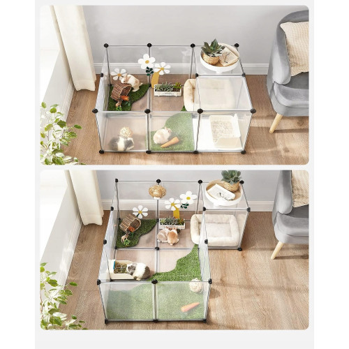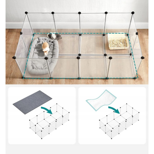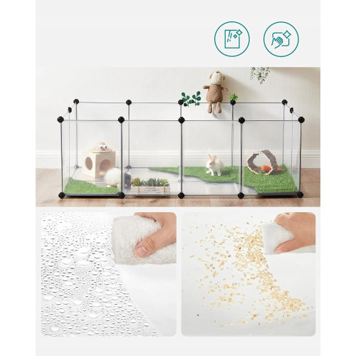Этот вольер обеспечивает морским свинкам, хомякам, ежам и кроликам большое пространство для игр, исследований и развлечений. Гладкие панели размером 45 x 35 см и 35 x 35 см защищают их лапы и предотвращают побег.