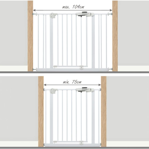 Ширина ворот регулируется с помощью 4 винтов с резиновой крышкой , поэтому вы можете адаптировать их к разным местам вашего дома. В комплект также входят два удлинителя по 10 см , которые позволяют адаптировать ворота к разной ширине дверных коробок и лестничных проходов.