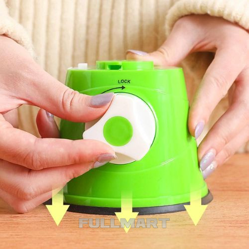 Ручная соковыжималка очень легкая и прочная, не требует электроэнергии и может использоваться даже на природе, например, во время заготовки урожая на даче. С помощью вакуумной присоски устройство удобно крепить к столу. Материалы, используемые в конструкции соковыжималки, прочные и безопасные для человека. Вакуумная присоска обеспечивает стабильность.