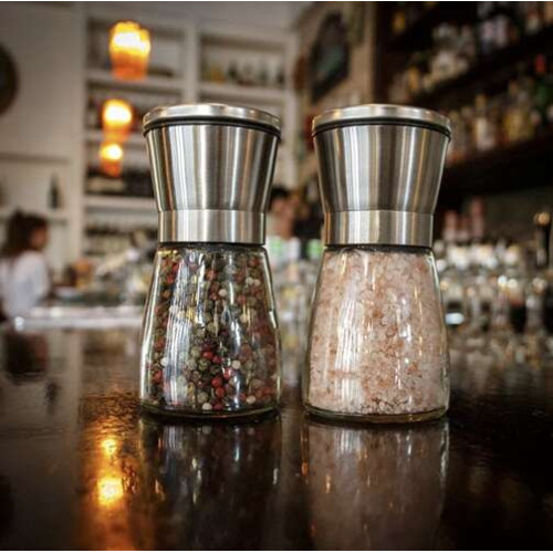 - ШЛІФУВАННЯ - ручні м'ясорубки зі скляною тарою – кухонні інструменти, що використовуються для подрібнення спецій або трав. Кожна кавомолка складається зі скляного контейнера, якісного механізму подрібнення, ручки, що регулює розмір шматочків мелених спецій, та кришки. Верхня частина кавомолки виготовлена із високоякісної нержавіючої сталі.