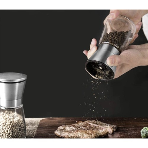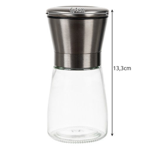 - ЛЕГКО ВИКОРИСТОВУВАТИ - Щоб використати ручну кавомолку, наповніть скляну ємність сіллю, перцем або іншими спеціями та прикрутіть верхній механізм. Потім однією рукою тримаємо болгарку вгору дном, а іншою повертаємо деталь із нержавіючої сталі. Тепер мелені спеції подаються через нижню частину кавомолки. Не забудьте зняти кришку та відрегулювати розмір шматочків.