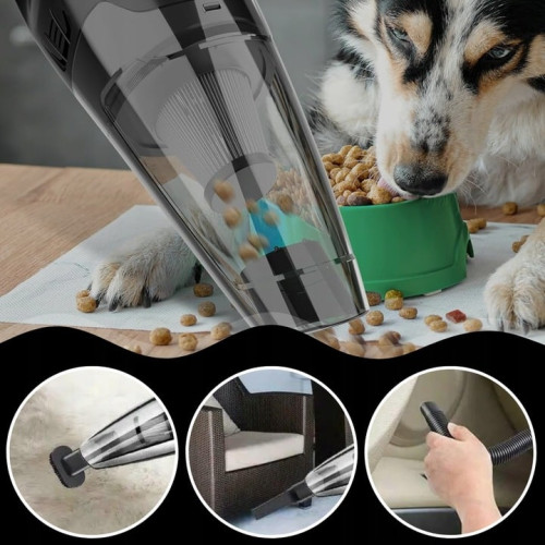 Ідеальний гаджет для людей, які цінують порядок у машині, особливо коли є діти чи тварини. Відвідування автомийки часто пов'язане з довгими чергами, витратами та брудним пилососом, яким люди мили свої машини. Прибирання дивана таким пилососом є негігієнічним і залишає багато бактерій, тому портативний пилосос – ідеальне рішення. Пилосос дуже потужний, він має аж 38 000 – 40 000 обертів за хвилину! Така величезна потужність у маленькому пристрої, виріб не вимагає підключення до джерела живлення. Він має вбудований акумулятор, якого достатньо, щоб очистити весь автомобіль! Вам не доведеться мати справу із заплутаними кабелями та цікаво, чи достатньо його, щоб очистити багажник. НАША модель бездротова та надзвичайно приємна у використанні. Він має зручну ручку, а верхня частина має канавки, щоб не вислизала з руки під час пилососа, а також легка, тому навіть при тривалому використанні це не проблема.