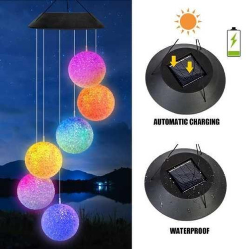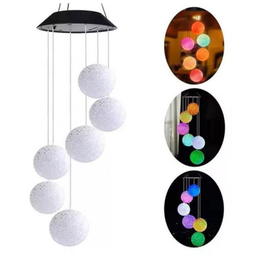 Перетворіть свій сад на місце казки з нашою садовою підвісною лампою з LED кулями! Ця декоративна підвіска з шістьма кольоровими світлодіодними кулями створює дивовижний ефект, підсвічуючи вашу обстановку ніжними та яскравими відтінками.