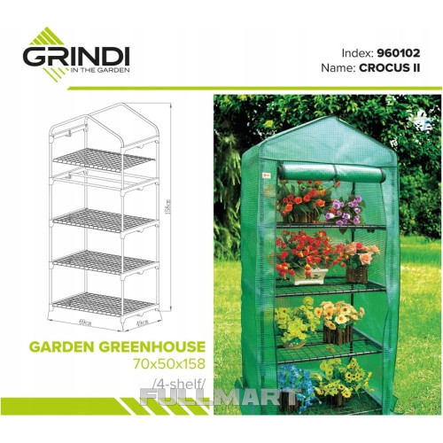 Теплица Крокус очень легко и быстро собирается. Широкая рулонная дверь на молнии обеспечивает вентиляцию или защиту от погодных условий. В комплект входят четыре полки, использование которых позволит оптимально использовать пространство теплицы. В наборе входят все монтажные элементы: трубы и соединители для каркаса, пленка, четыре полки и инструкция.