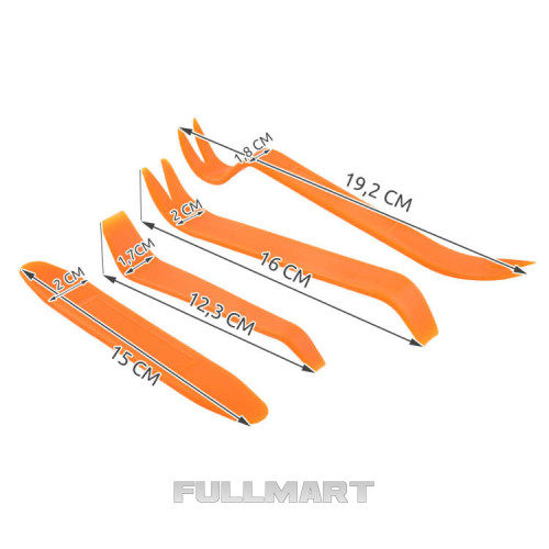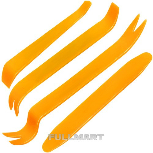 - РАЗНООБРАЗИЕ НАБОРА - состоит из 4-х ложек разной длины и твердости и идеально подходит для демонтажа различных типов пластиковых элементов, закрепленных защелками, например, автомобильной обивки, автомобильных зажимов, пультов от телевизора, электронного оборудования и т. д.