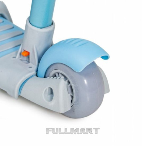 Колеса размером 120 мм изготовлены из прочного полиурилетана оснащены подшипниками ABEC 7 благодаря которым самокат достаточно быстро разгоняется а так же его легко котить, что значительно упрощает нагрузку на маму. Передние колеса светятся во время катания, на заднем колесе размещен ножной тормоз - который срабатывает быстро и четко!