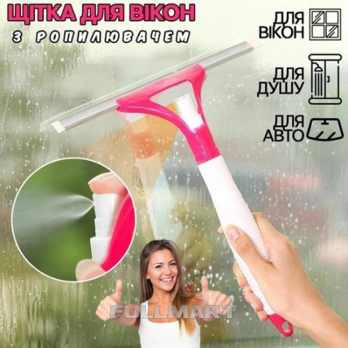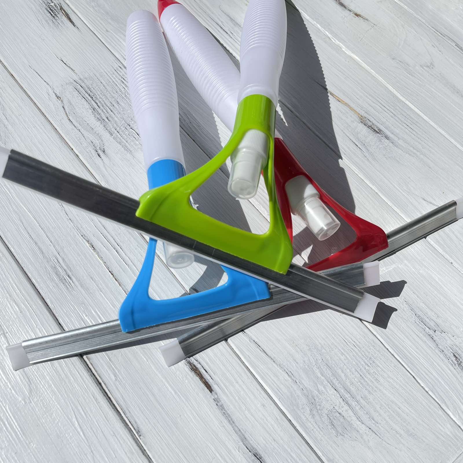 Многофункциональный стеклоочиститель с распылителем. У данного на вид простого стеклоочистителя, есть распылитель, а так же емкость в ручке для чистящего жидкого средства. Заливаете жидкость, распыляете на поверхность и сразу удаляете всю грязь вместе с чистящим средством. Очень удобный стеклоочиститель. Больше не нужно споласкивать тряпки, пачкать руки и портить себе настроение.