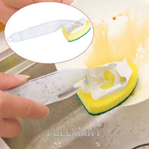 Приспособление состоит из 2 основных частей: собственно губки с пластиковым креплением и полой ручки, которая заполняется водой с небольшим количеством любимого средства для мыться посуды. Вода из контейнера постоянно смачивает губку, позволяя ей всегда оставаться полной пены и жидкости. Таким образом, губка с ручкой даёт возможность полностью сосредоточиться на оттирании кусочков пищи и не беспокоиться о прочем.