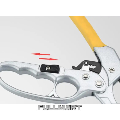 Храповый механизм уменьшает прилагаемое усилие при обрезке. Механизм действует в «три приёма». Очень прост в использовании и мужчинам ,и женщинам. Универсальность использования – обрезание веток на деревьях, кустарниках, винограде, розах диаметром до 19 мм (прямой срез) , придание формы кустам и деревьям, предотвращение загущения кроны, что способствует увеличение урожайности до 70%.