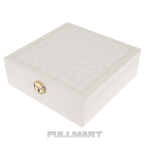 - СЪЕМНАЯ ТРАНСПОРТНАЯ КАССЕТА - на первом уровне кейса расположен съемный короб, закрывающийся на защелку. В нем есть 6 мест поменьше и 1 большое. Идеально подходит для того, чтобы взять в поездку несколько ожерелий, сережек, колец или браслетов . Он легко поместится в любую сумочку/косметичку и позволит всегда иметь его при себе.