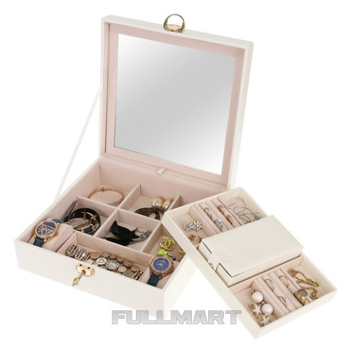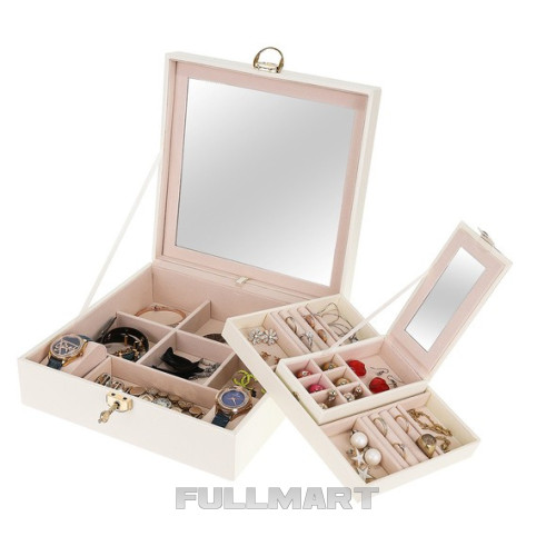 - ВМЕСТИМОСТЬ - футляр состоит из: съемного чехла с 2 отделениями с роликами для колец, 4 отделений для других украшений и съемной коробки. Внизу имеется 6 дополнительных отделений, 2 вставки для часов или браслетов и 1 большое прямоугольное отделение для более крупных вещей. Отделения отделаны мягким материалом, который защищает деликатные украшения от царапин.